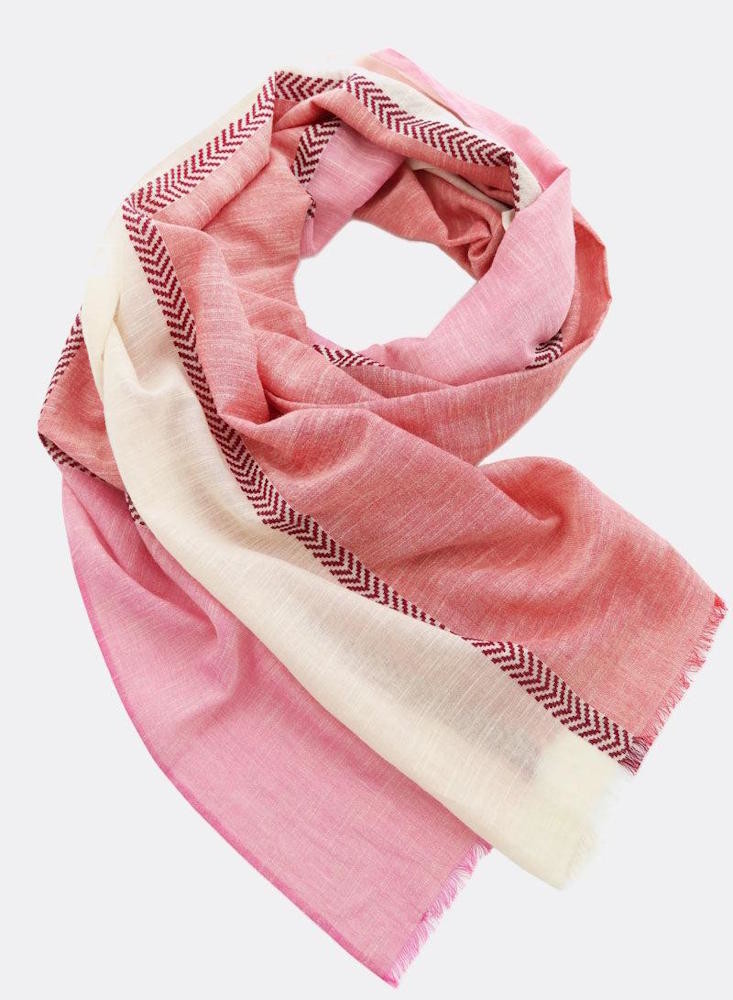 Foulard léger pour femme, avec un effet dégradé de couleurs. Il est réalisé dans un tissu fin de coton biologique tissé. Broderies décoratives. Ces jolis tons pastels vous permettront d'apporter une douce touche de couleur à vos tenues et de garder votre cou au chaud.