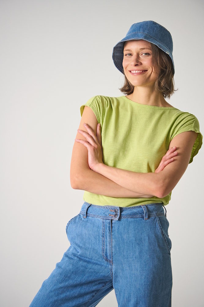 Matière : jersey slub (tissage irrégulier) 55% chanvre, 45% coton bio 175g/m²