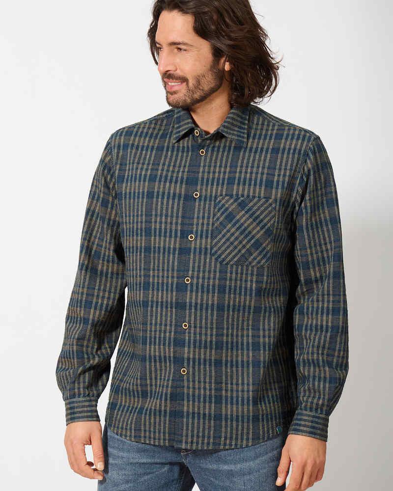 Modèle : chemise écologique pour homme, coupe casual avec poche poitrine, tissu à carreaux