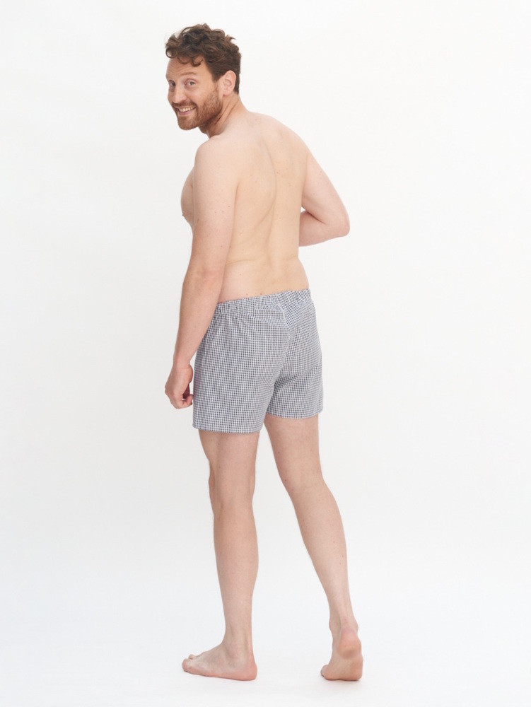 Pack de deux caleçons (un rayé, un à carreaux vichy) en tissu fin et léger de coton bio. Élastique à la taille. Finition de qualité Living Crafts.