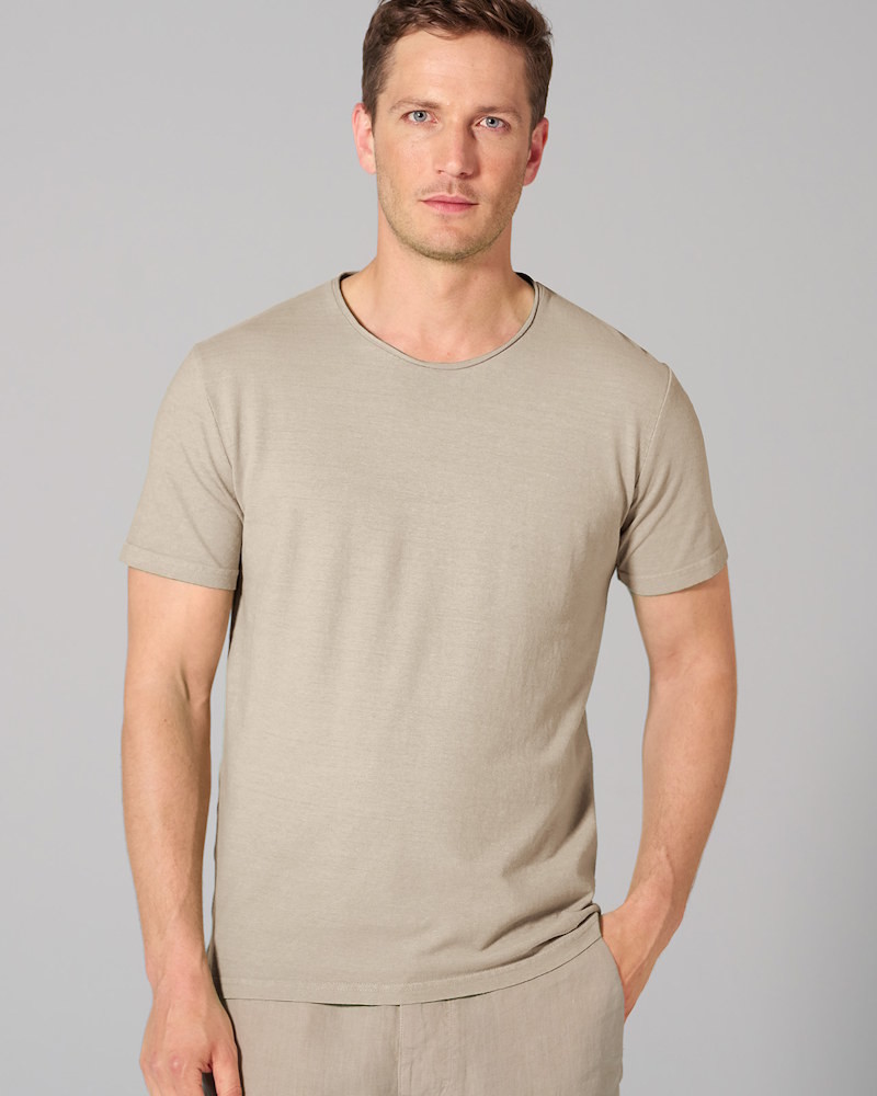 Modèle : t-shirt homme en jersey écologique, manches courtes. Finition roulotté à l'encolure.